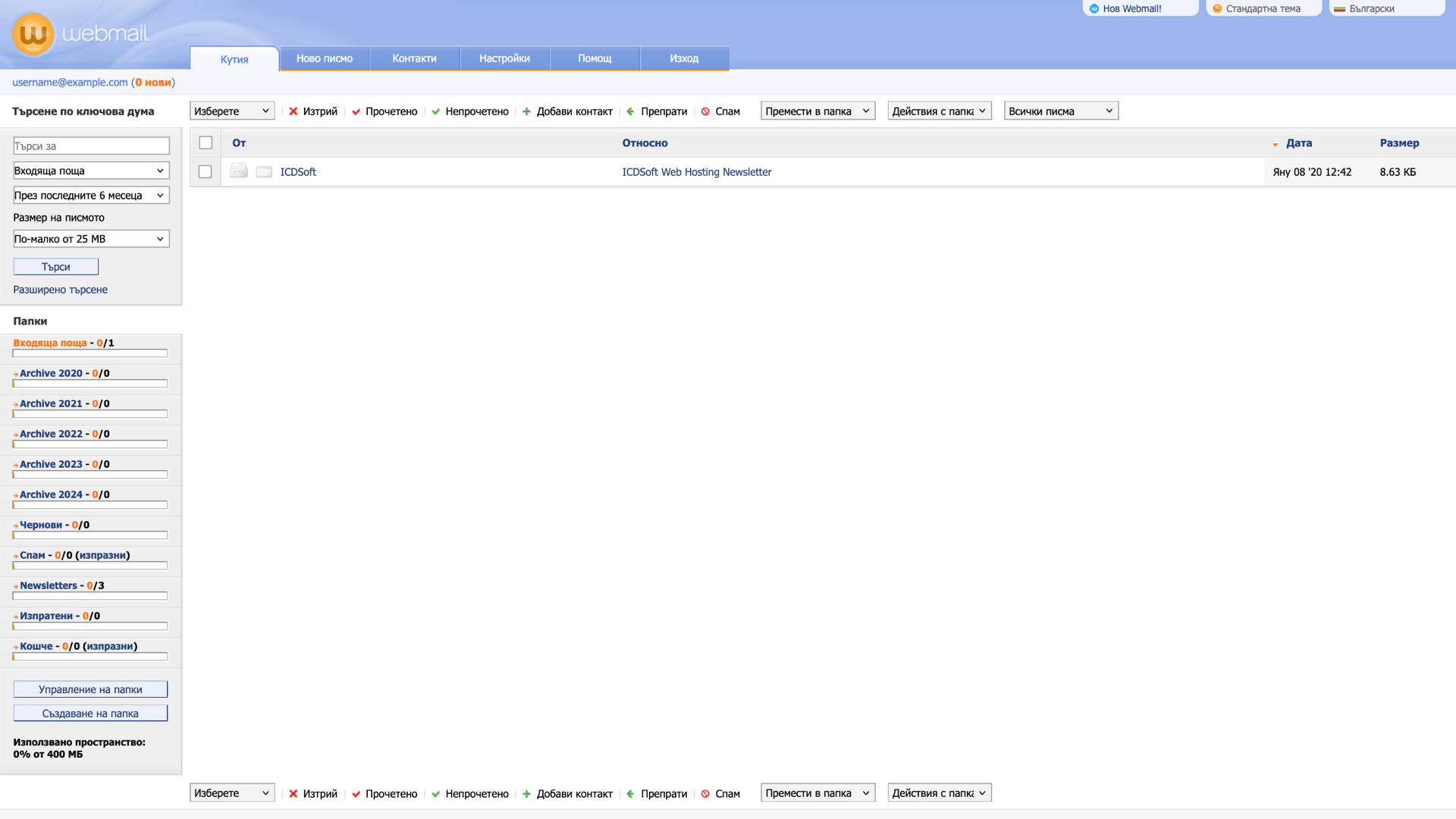 Алтернативен вариант е да изискате от предишния Ви хост архив на Вашите съобщения в Maildir формат и да ни ги предоставите. Ние, от своя страна, ще се опитаме да ги прехвърлим в нашата система.