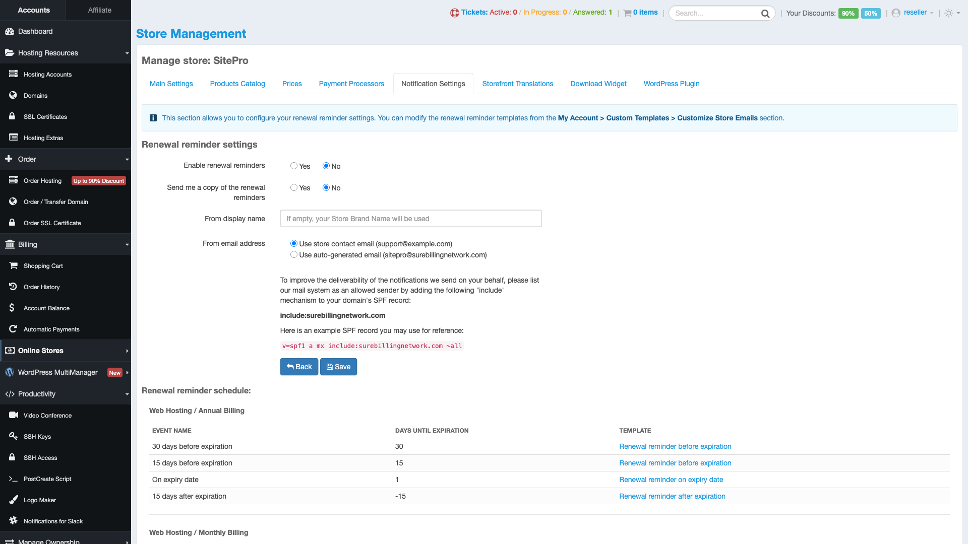 The Online Stores system allows you to have your end customer orders processed automatically on our side. This way the hosting account can be opened, and the customer can receive the account details without any action required on your side. To achieve this, you must have: